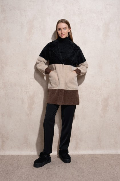ABRIGO MIDI EFECTO PELO CON BOLSILLOS