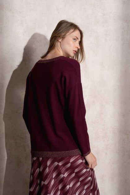 SUÉTER DE PUNTO DE LÚREX CON CUELLO EN V COLOR BERENJENA