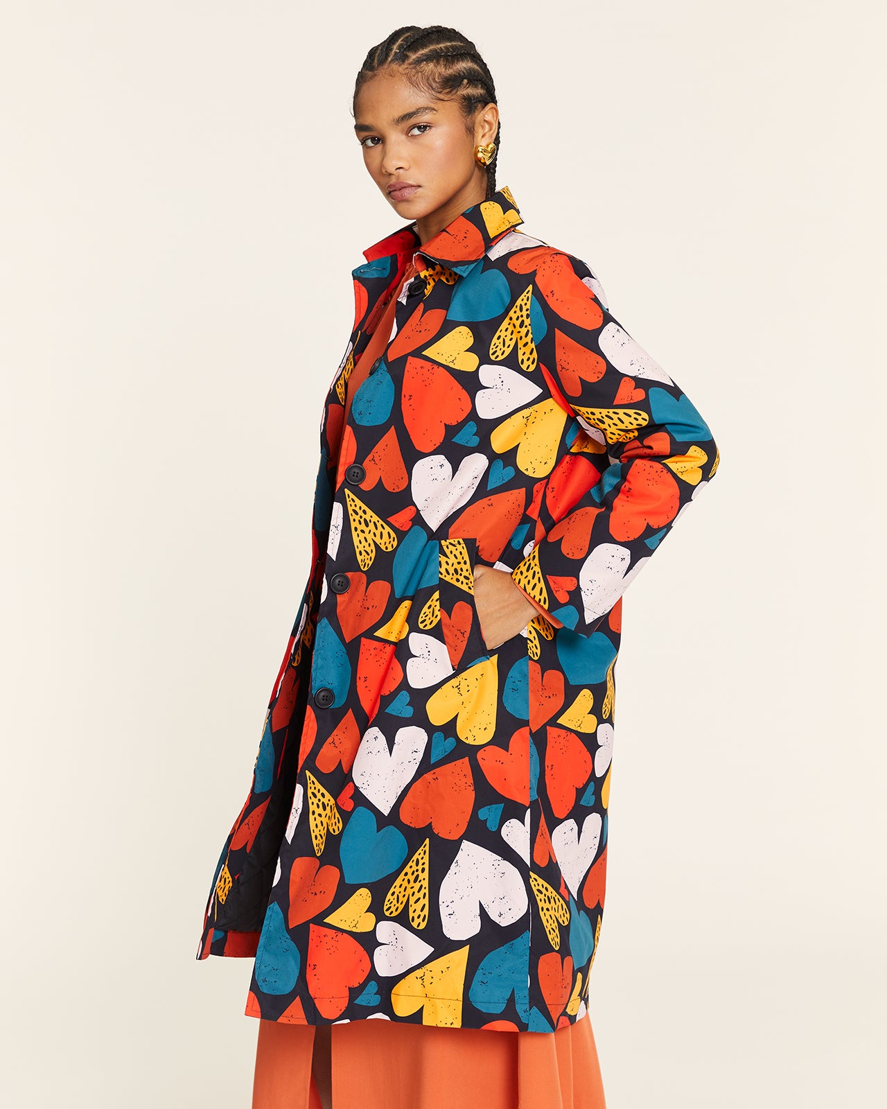Gabardina impermeable con botonadura. Mangas rectas. Bolsillos integrados.