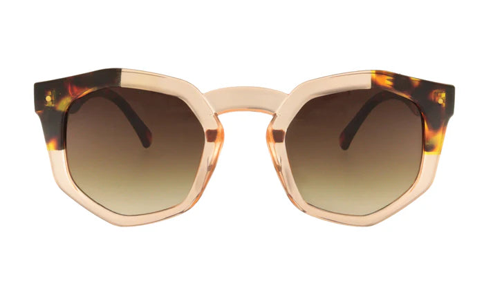 Una forma extravagante y unos colores originales, así es Audrey, un diseño juguetón para chicas atrevidas. Charly Therapy nos sumerge en los años 80's, junto a estas Gafas de sol hexagonales color melocotón. Este verano Audrey será nuestra compañera de aventuras perfecta, no pararás de inmortalizar tus looks en coloridas Polaroids. Con nuestras gafas de sol hexagonales Audrey color melocotón maximiza tu estilo y deja tu marca.