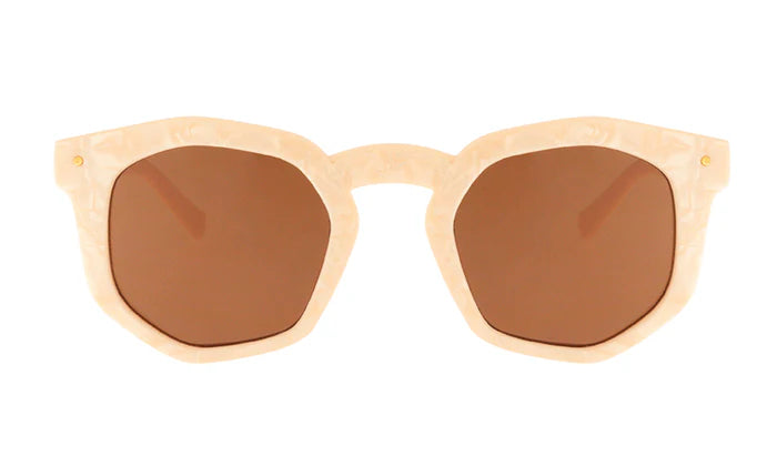 Una forma extravagante y unos colores originales, así es Audrey, un diseño juguetón para chicas atrevidas. Charly Therapy nos sumerge en los años 80's, junto a estas Gafas de sol hexagonales de colores. Este verano Audrey será nuestra compañera de aventuras perfecta, no pararás de inmortalizar tus looks en coloridas Polaroids. Con nuestras gafas de sol hexagonales Audrey nácar maximiza tu estilo y deja tu marca.