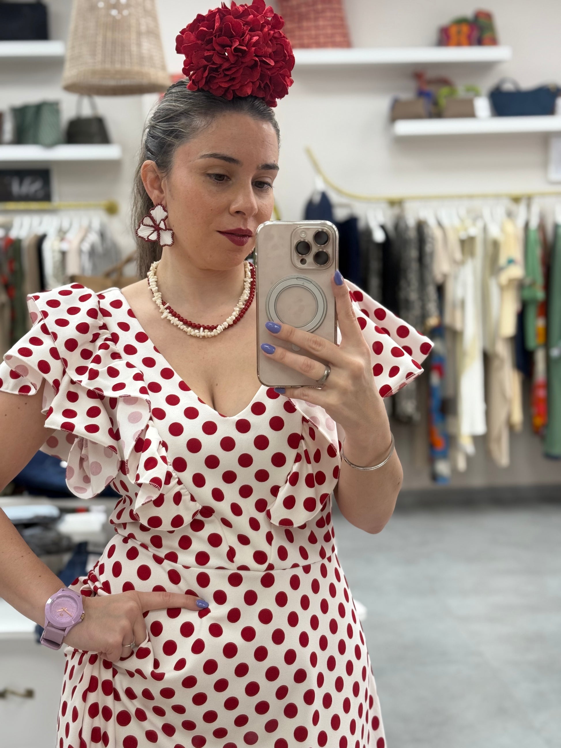 BATA FLAMENCA BLANCA LUNARES ROJO