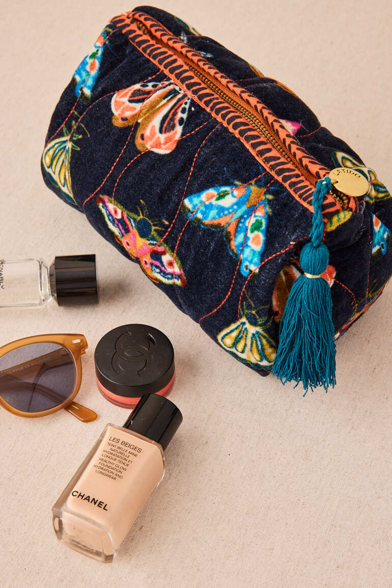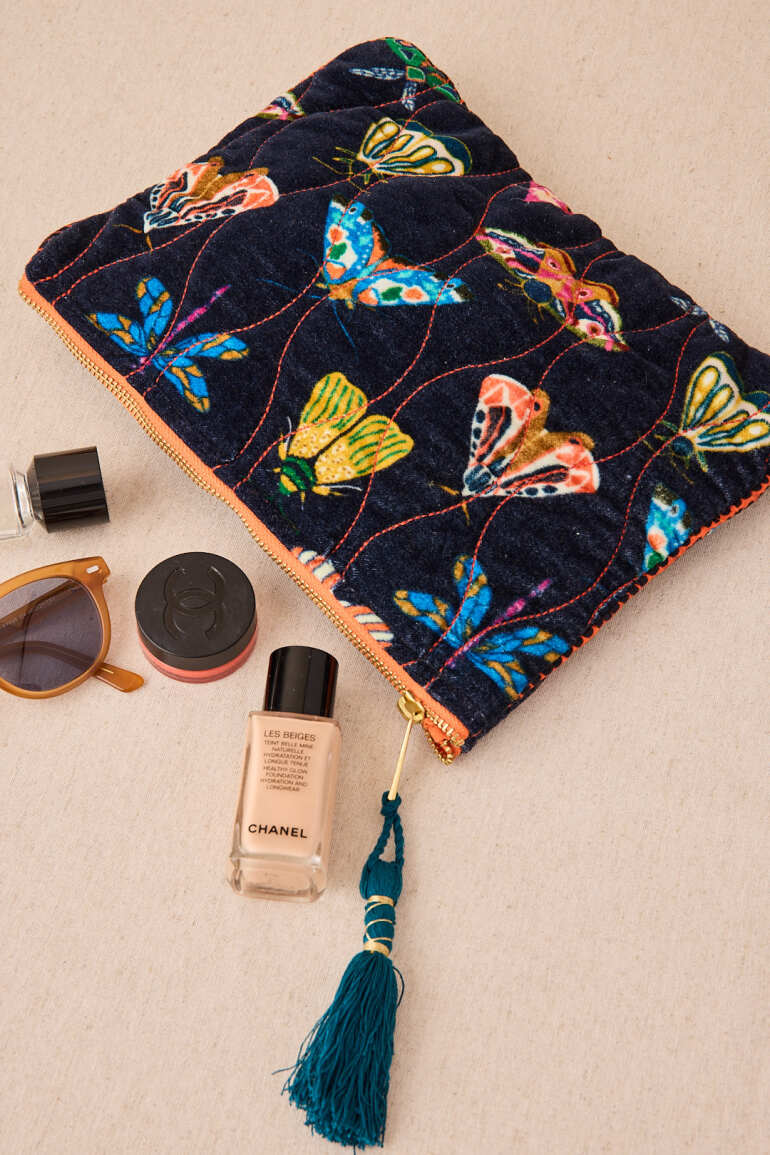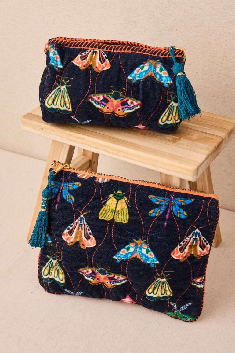 BOLSITA NECESER TERCIOPELO INSECTOS COLOR AZUL MARINO
