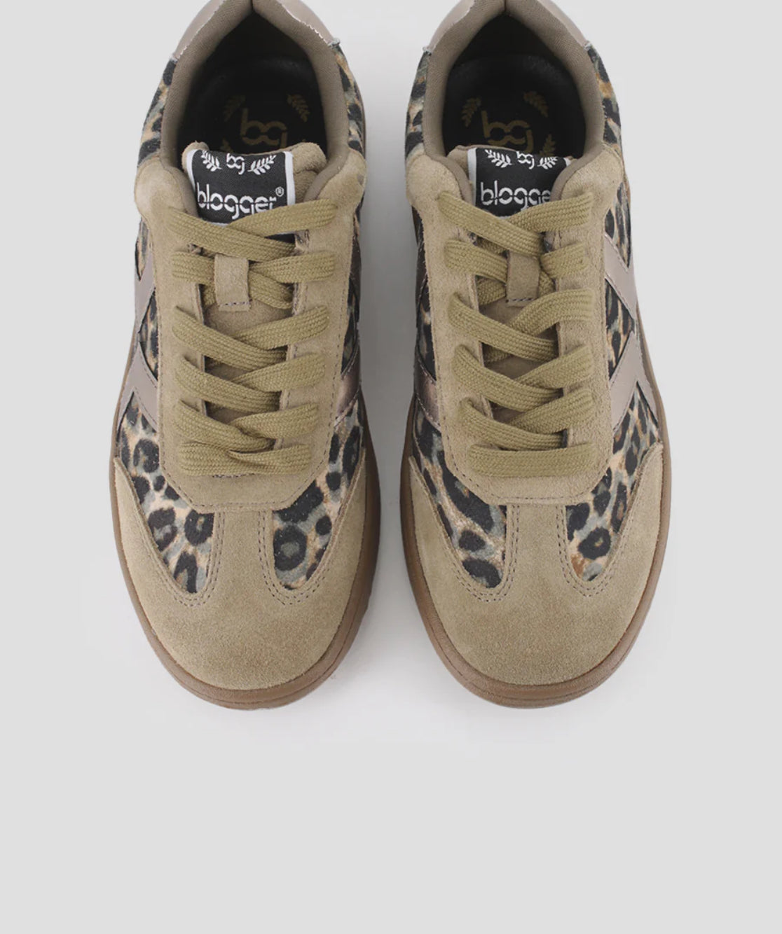 Zapatillas en piel de serraje sintético color camel, con un llamativo estampado de leopardo y detalles en dorado que aportan un toque audaz y sofisticado. Piso plano de 3 cm de altura para una pisada cómoda y segura. Forro interior en textil que garantiza transpirabilidad, y plantilla en material sintético para mayor confort durante todo el día. Ideales para quienes buscan estilo y comodidad con un toque salvaje.