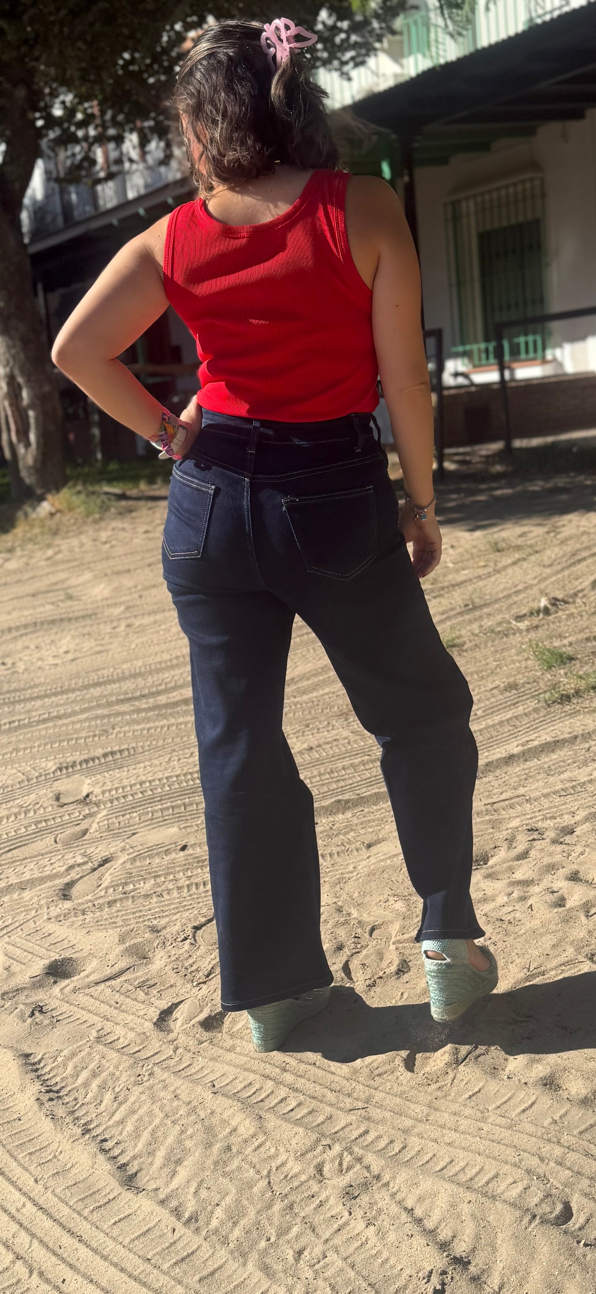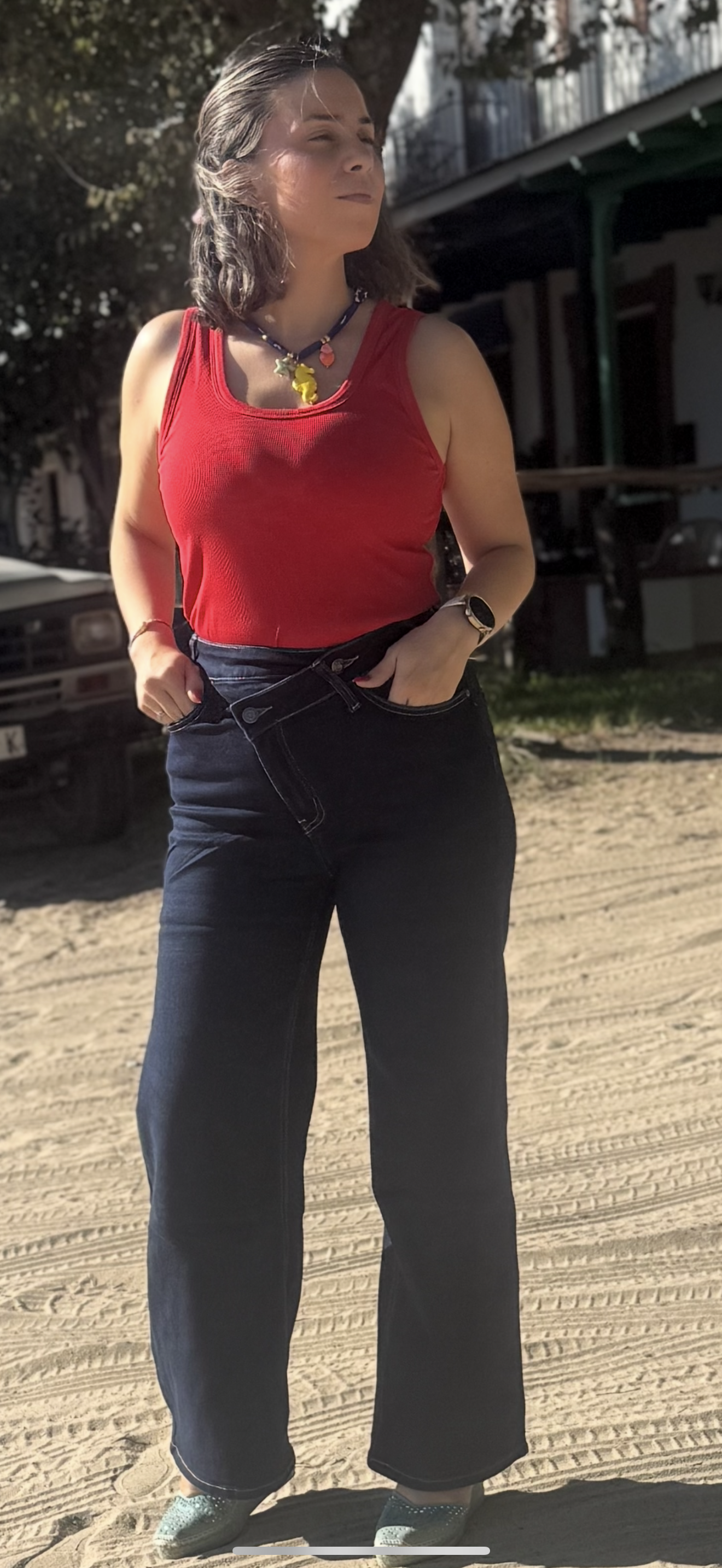 PANTALÓN VAQUERO BOTÓN DESIGUAL