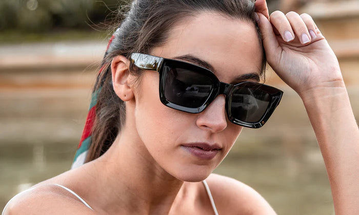 Enfatiza tu estilo personal con las gafas de sol ROSIE NEGRO. Un diseño con mucha personalidad que se ha convertido en uno de los favoritos de la colección. De marco rectangular y ancho, Rosie, no sólo lleva tus looks a otro nivel si no que también asegura protección total con sus lentes de protección UV400. Complementa tus looks más cool con nuestras Gafas de sol rectangulares vintage. Elige una para cada estación del año o las clásicas gafas de sol rectangulares negras, un infaltable comodín para disfrutar todo el año. Para las que os animéis a dar un paso más allá, tenemos texturas coloridas y también divertidas combinaciones bicolor. Elige tus favoritas y empieza a marcar tendencia con Rosie.