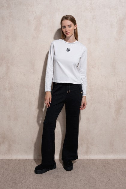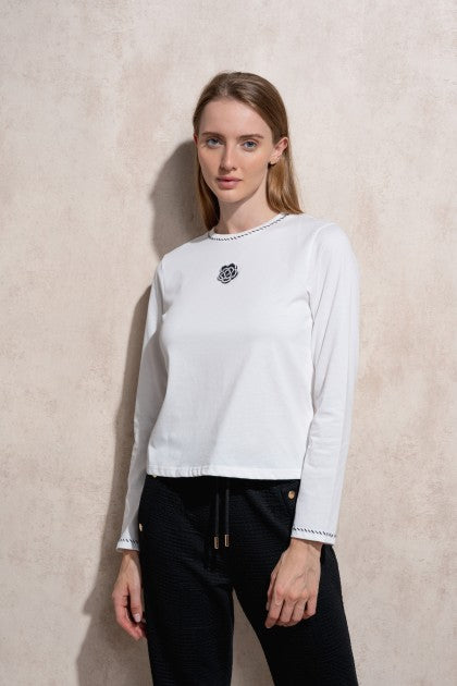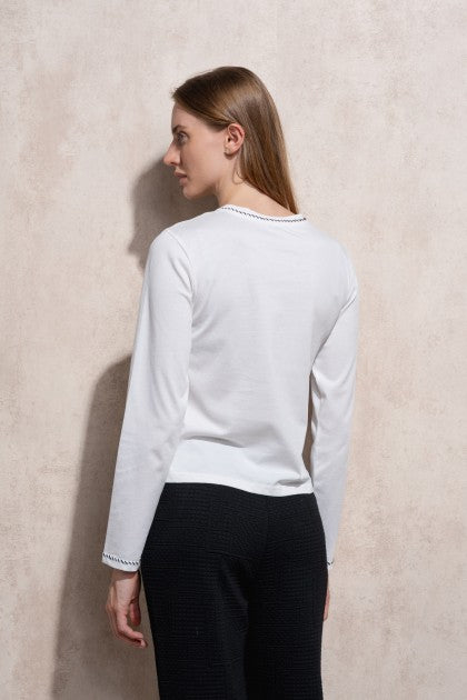 SUÉTER BLANCO CON BORDADO Y APLICACIÓN