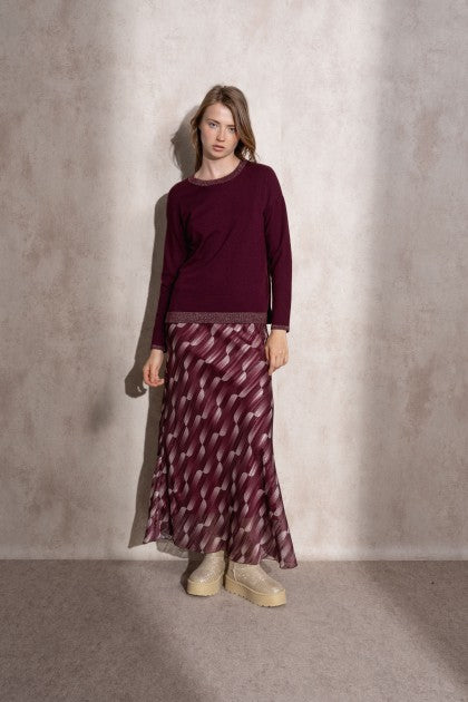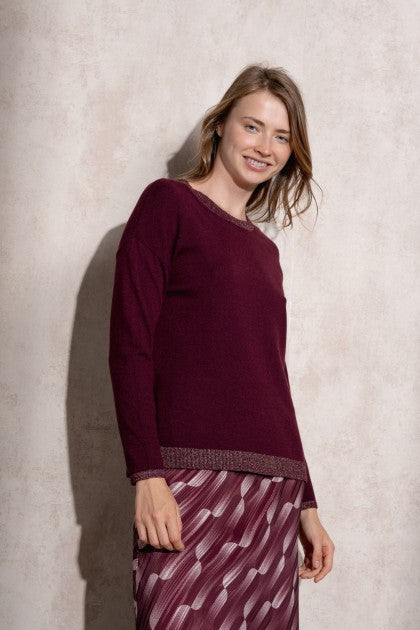 SUÉTER DE PUNTO DE LÚREX CON CUELLO REDONDO COLOR BERENJENA