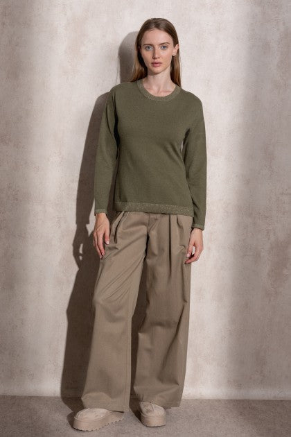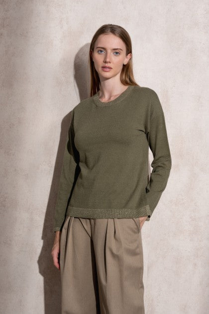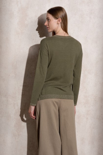 SUÉTER DE PUNTO DE LÚREX CON CUELLO REDONDO COLOR VERDE