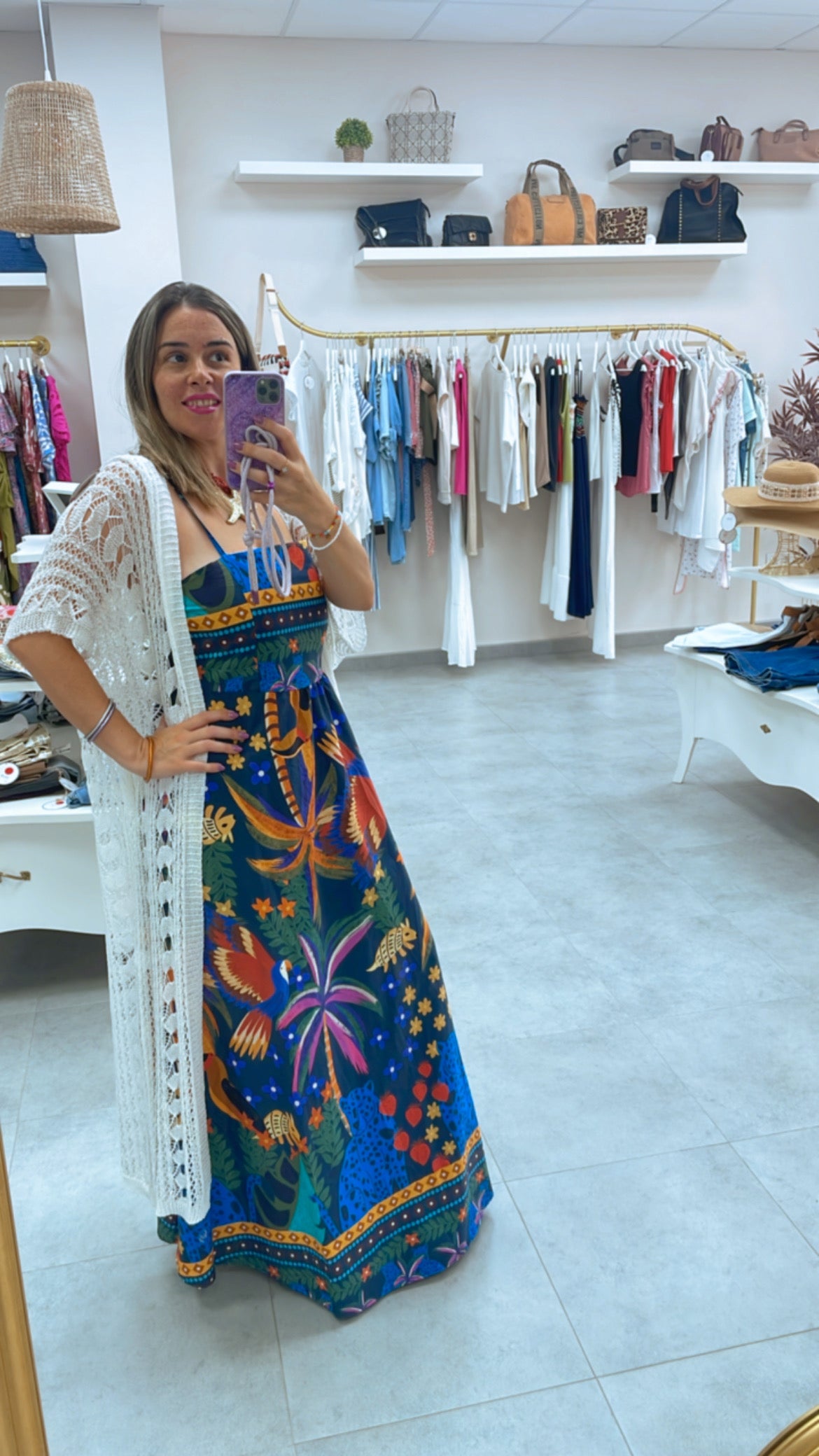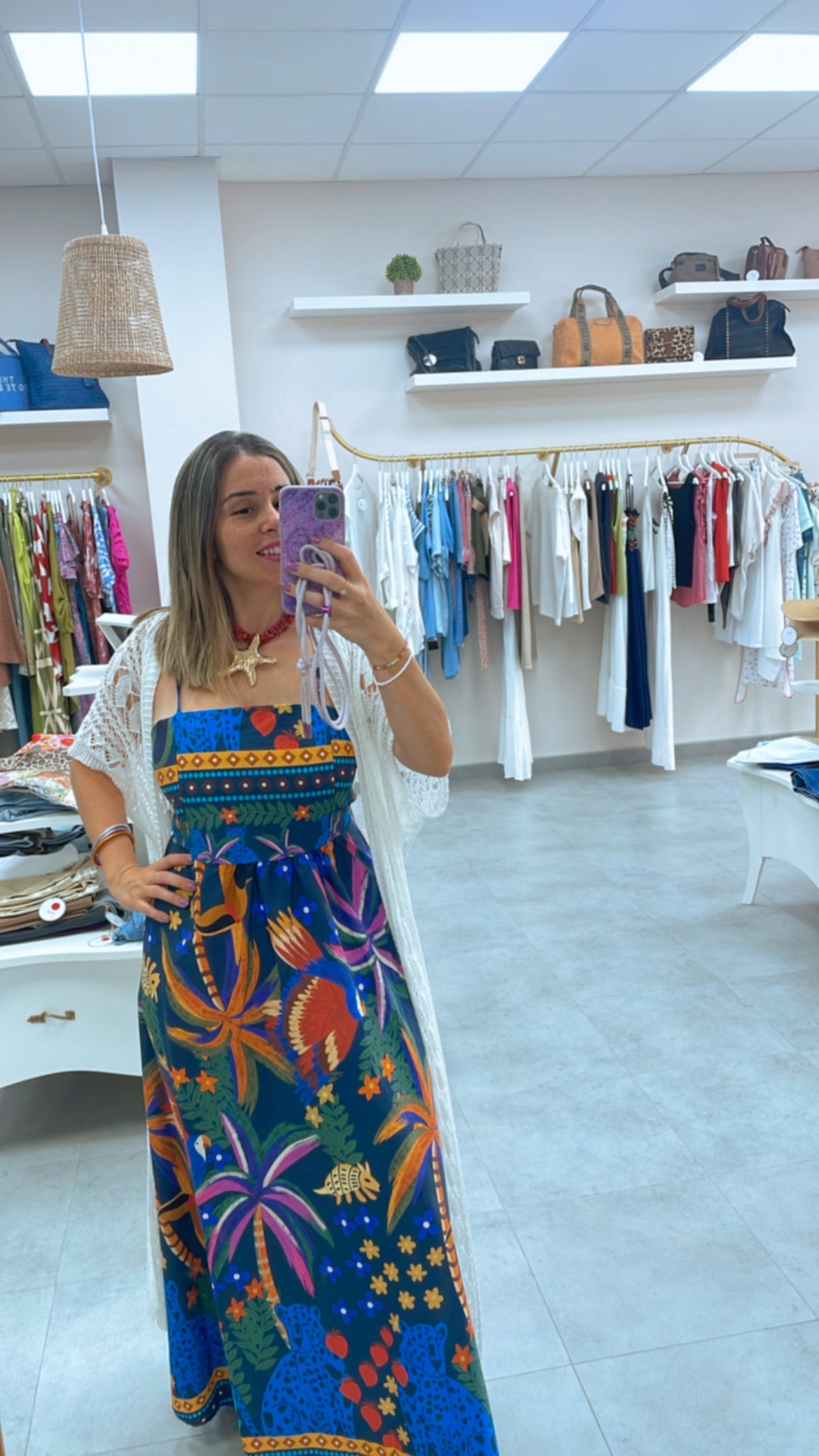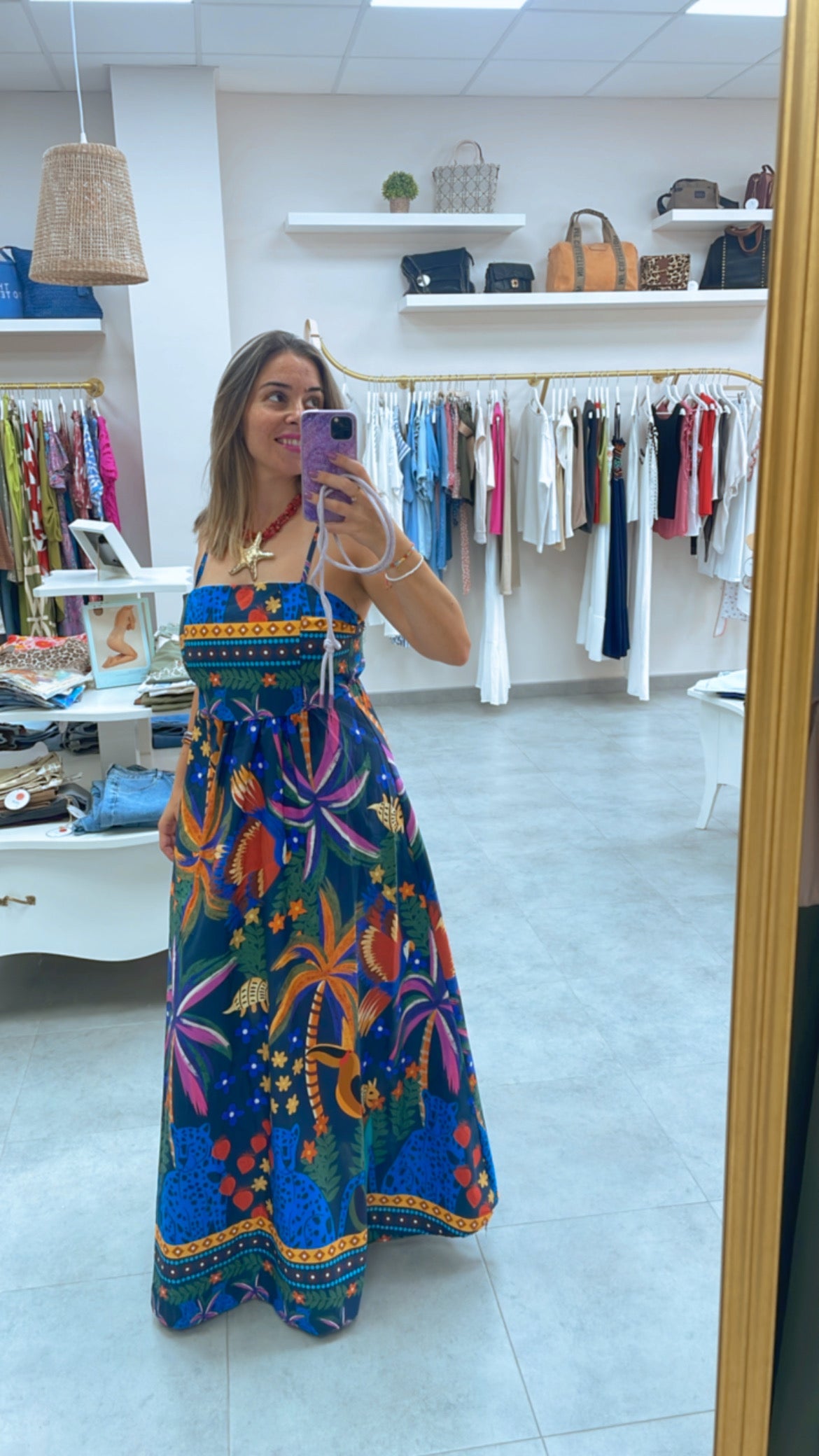 Importante, la parte de la espalda lleva hasta la cintura con escote unido por la misma cinta de la tiranta