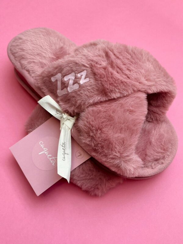 Zapatillas para estar por casa de la colección «Chica Durmiendo». Son muy suavitas y agradables al tacto. En color rosa viejo. Lavables en lavadora.